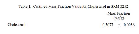 表 1 至表 3 中提供了 SRM 3252 中膽固醇、元素和維生素的認(rèn)證質(zhì)量分?jǐn)?shù)值,以干質(zhì)量為基礎(chǔ)報告。NIST 認(rèn)證值是 NIST 認(rèn)證的值對其準(zhǔn)確性的信心最高,因為所有已知或可疑的偏差和可變性來源都已考慮在內(nèi) [1]。價值分配分析由 NIST 和合作實驗室進(jìn)行。認(rèn)證值計算為 NIST 方法的平均值和合作實驗室提供的平均結(jié)果的中位數(shù)(在適當(dāng)?shù)那闆r下)。相關(guān)的不確定性以大約 95% 的置信水平表示 [2-4]。