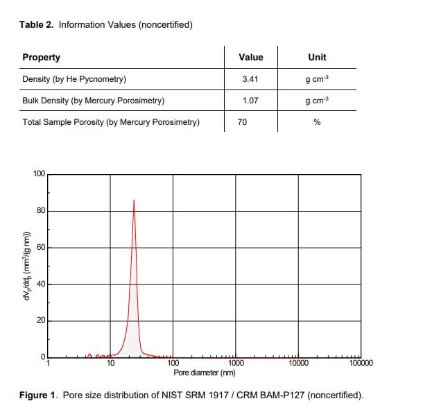 NIST SRM 1917汞滲透測量標(biāo)準(zhǔn)(標(biāo)準(zhǔn)品)由氧化鋁珠組成。材料的初級(jí)顆粒形成穩(wěn)定的附聚物。使用水銀孔隙率測定法,測量團(tuán)塊內(nèi)的孔隙。
